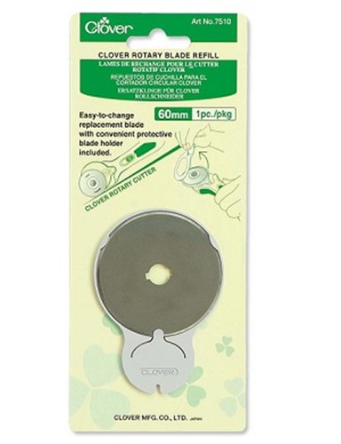 60mm Clover Rotary cutter replacement blade for Clover rotary cutters. This is a single pack of one blade. There is also a bulk pack of 5 available.
